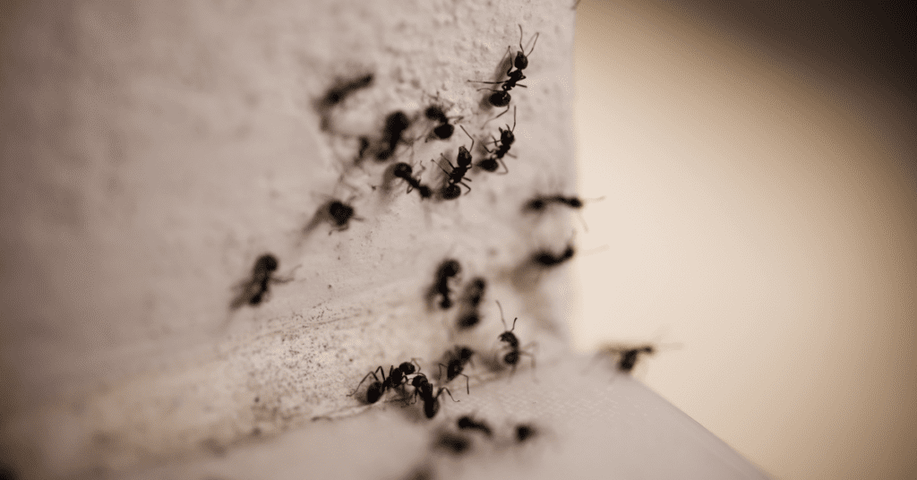 Carpenter ants are the largest ant species commonly found in Canadian homes, typically measuring between 6mm and 13mm in length, and are usually black or black with reddish-brown colouring. Spotting them inside — particularly in the evening when they’re most active — is a strong indicator that a nest may already be established nearby. Seeing winged black carpenter ants (swarmers) indoors is an especially urgent warning sign, as their presence almost always points to an established nest somewhere in the structure.
